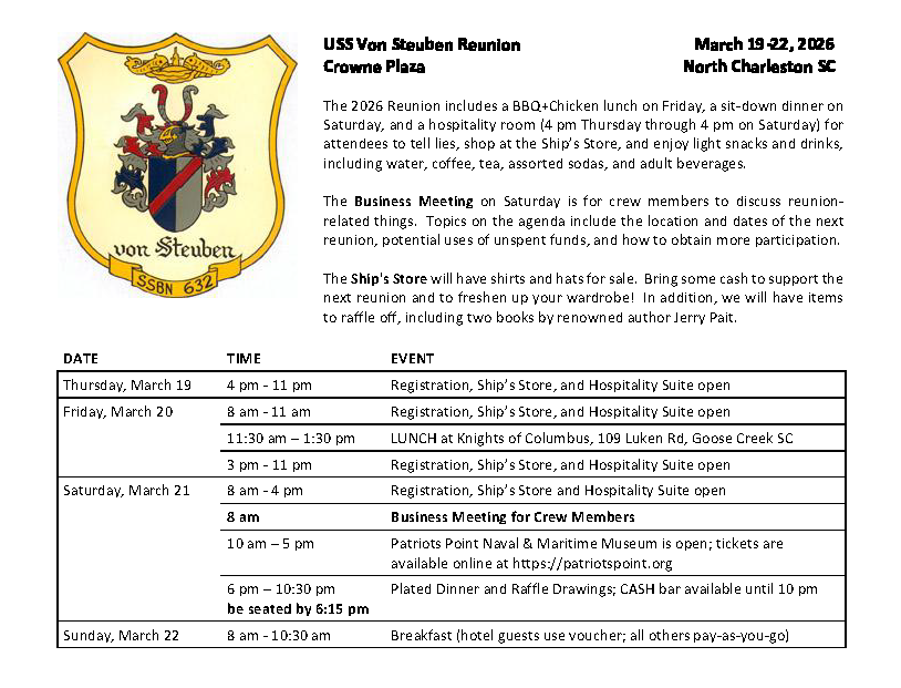 The 2026 Reunion fee includes BBQ+Chicken lunch on Friday, a